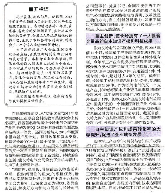 來自長嶺電氣公司自主創新工作的報告