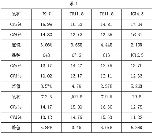 與CVm%值相比,CVd%更能反映紗線與織物之間的相關(guān)性,當(dāng)CVm%值較好而CVd%值較差時,表明了該紗線上存在影響織物質(zhì)量的不勻因素。要更嚴(yán)格控制紗線質(zhì)量,必須同時控制CVm%值和CVd%值,這也是當(dāng)前紗線質(zhì)量檢測的發(fā)展方向。