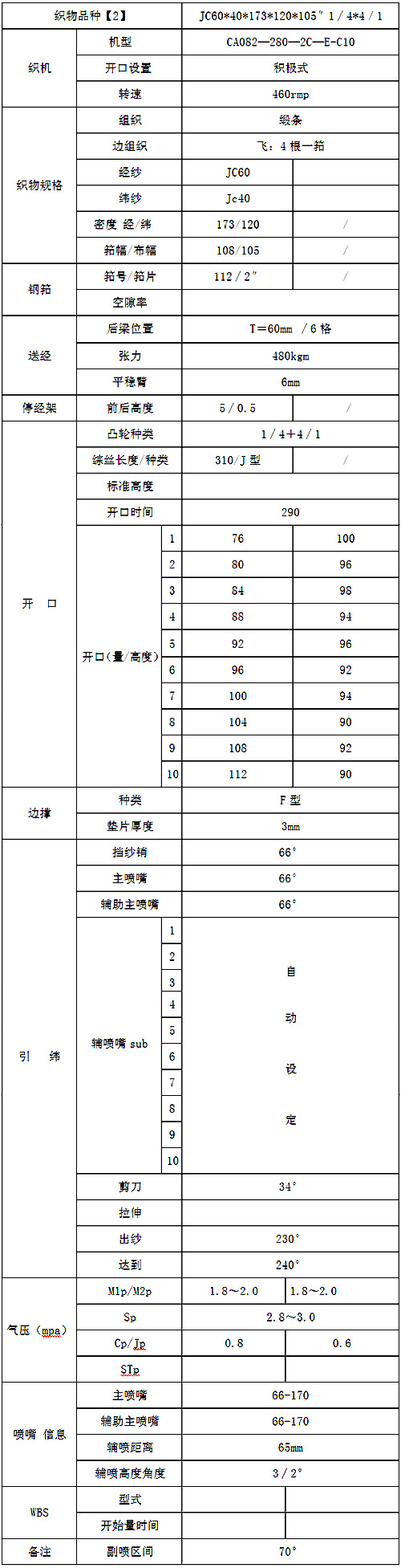 對噴氣織機而言一般制造應適應如下